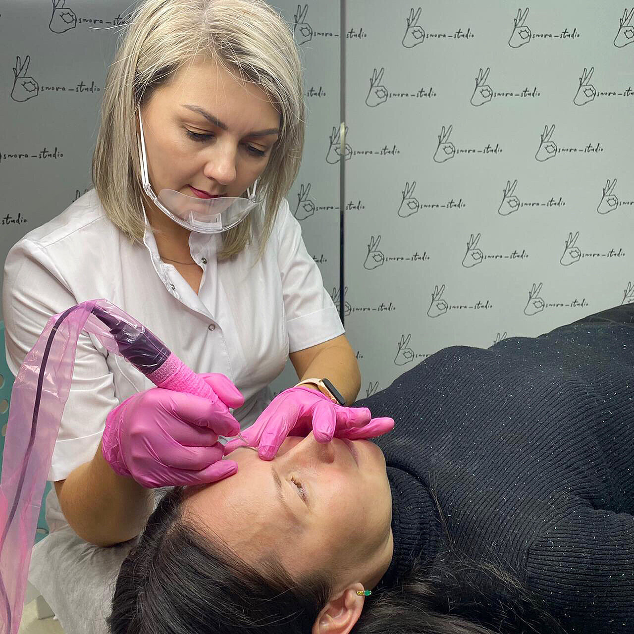 Я работаю только на профессиональном оборудовании. Использую в работе исключительно качественные пигменты и одноразовые расходники.