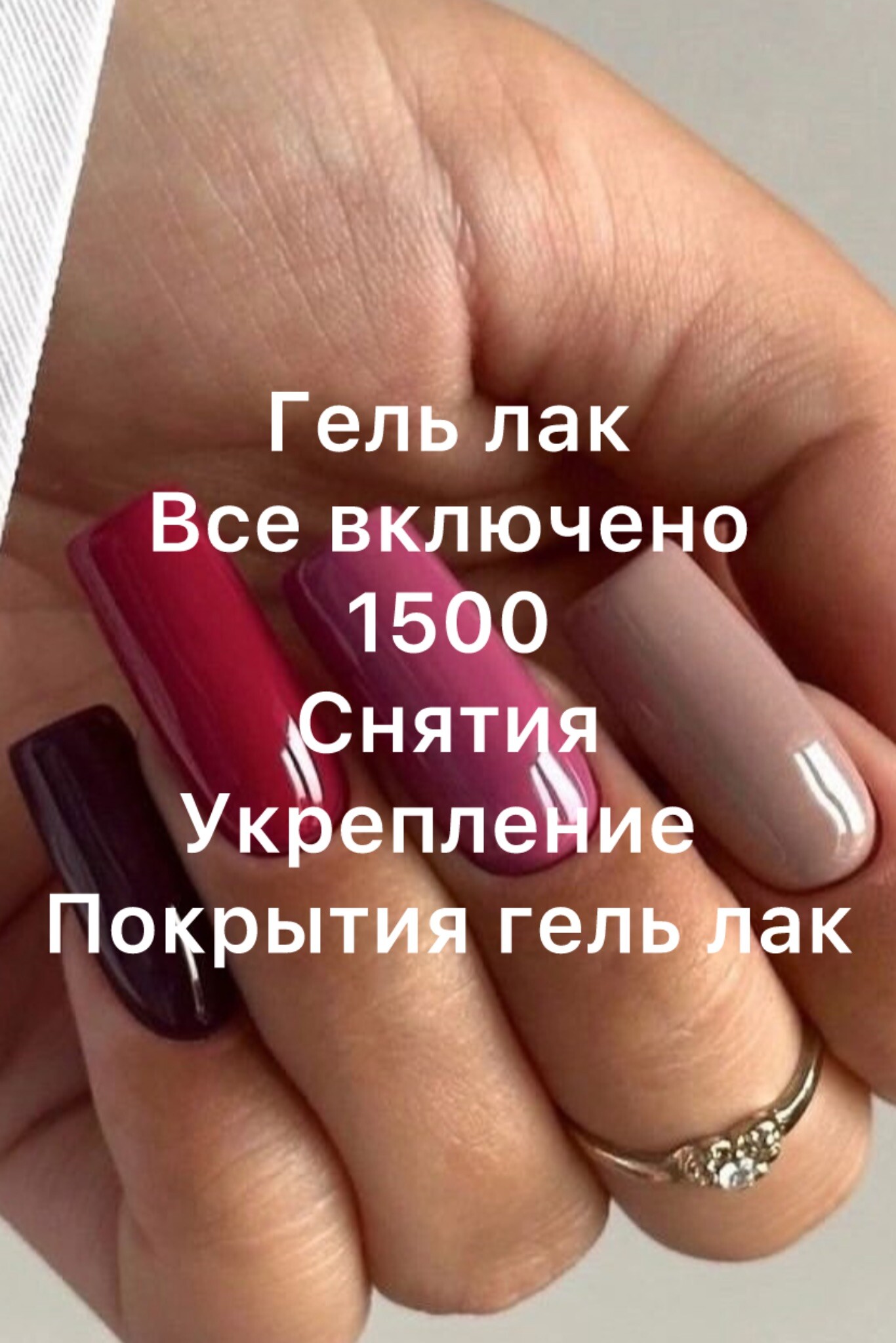 все виды покрытий – лак, гель-лак, полигель, акрил.
