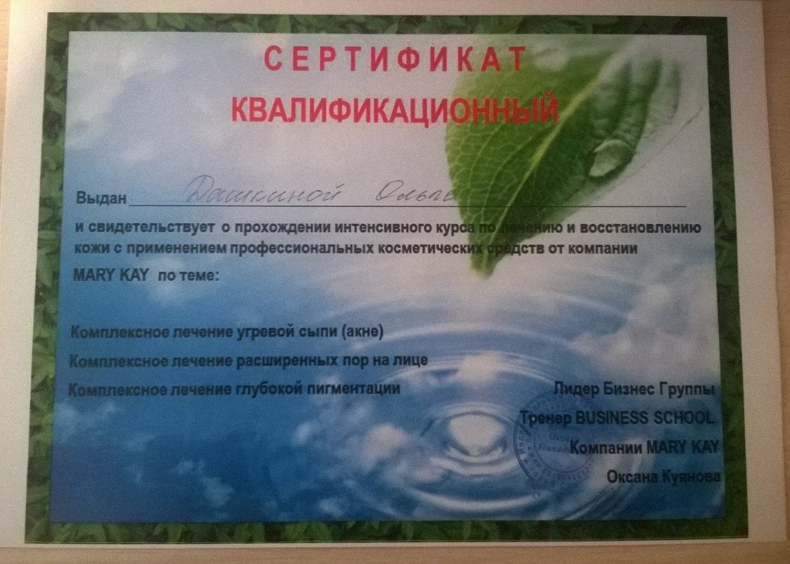 2017 г. - курс косметологии Ксении Самоделкиной