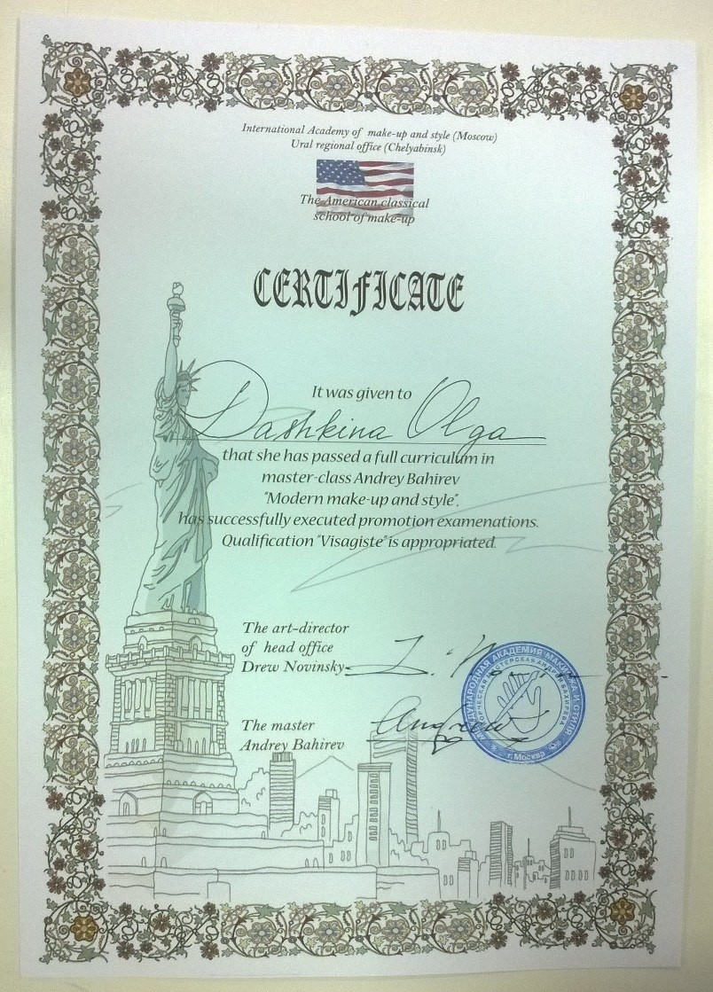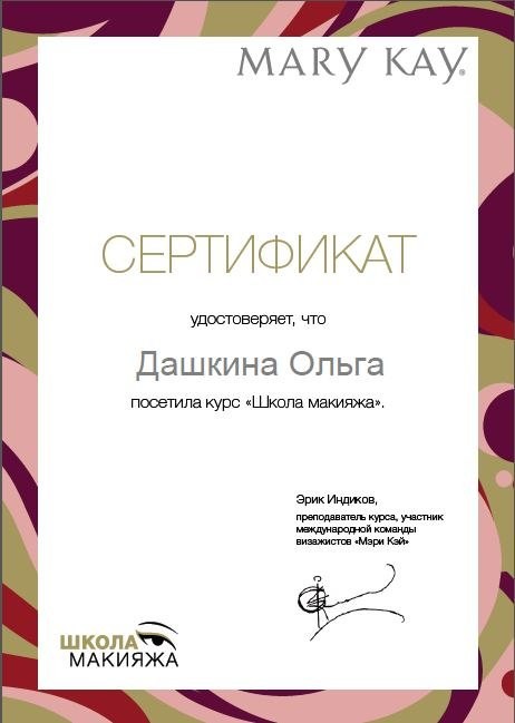 2016 г. - обучение по программе "Брови как искусство" Гаянэ Данельян